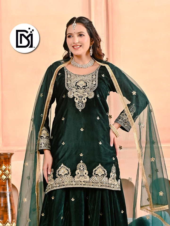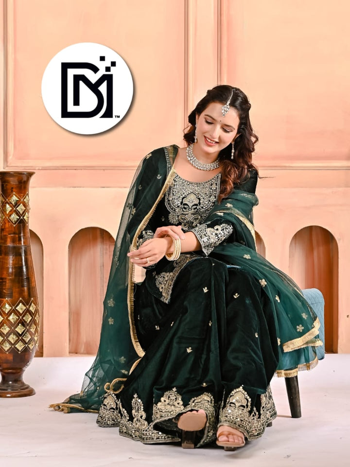 💃 Top Fabric * : pure heavy viscous velvet with heavy Coding Embroidery multi Needle sequence Work. *(Fully Sleeves )