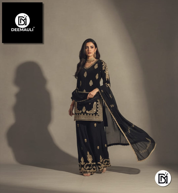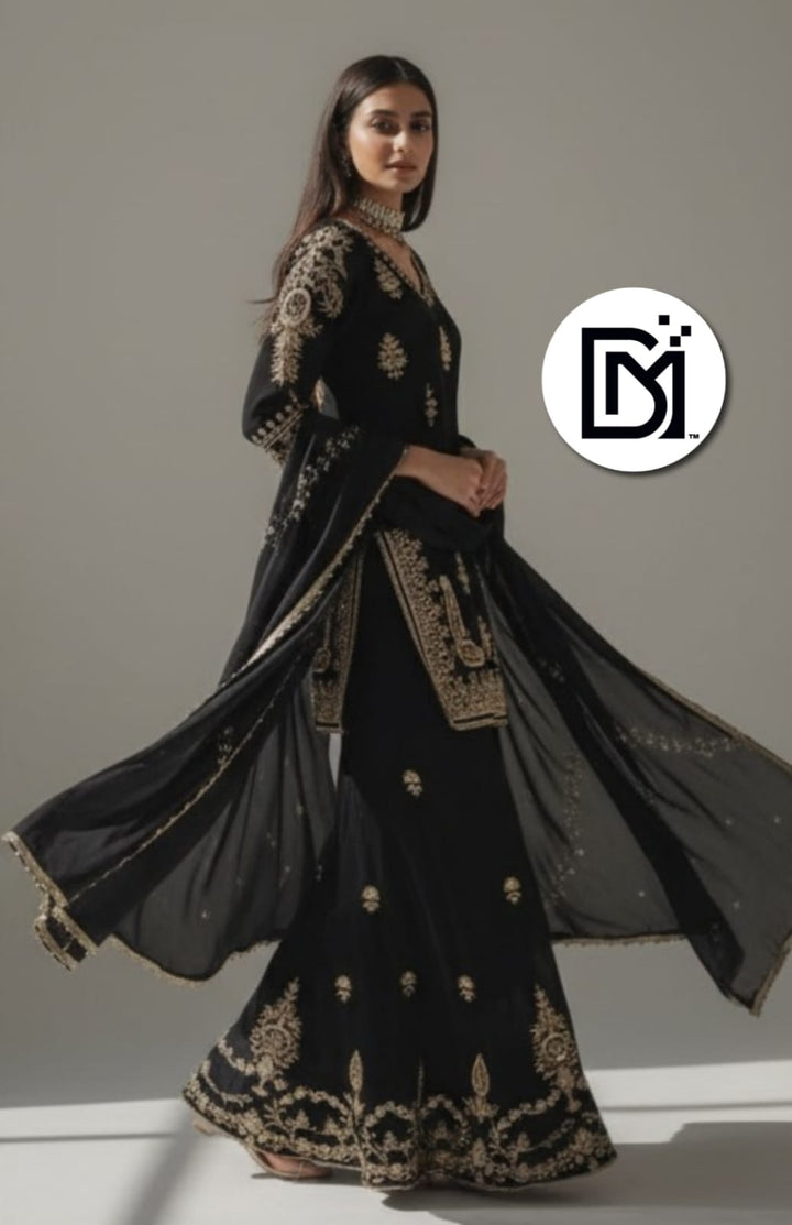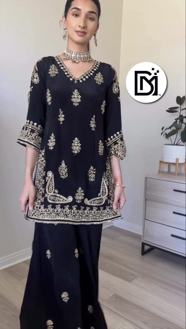 💃 Palazzo,Pent:- Heavy Chinnon Silk With 5mm Sequence Embroidery Work.