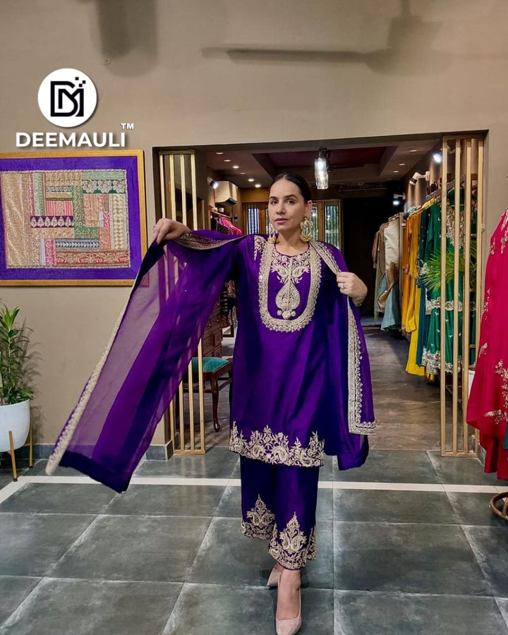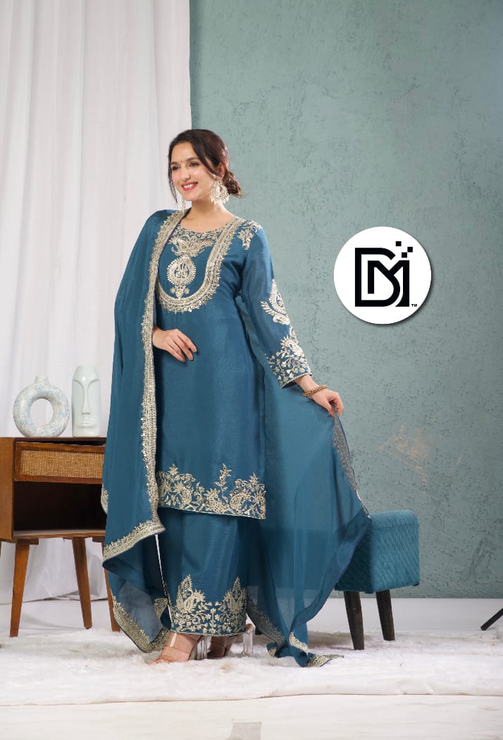 💃 Pant fabric :Pure Heavy Chinnon Silk With Heavy Embroidery Coding Sequence Work (FullyStitched)