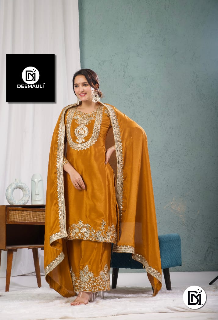 Pure Heavy Chinnon Silk With Heavy Embroidery Coding Sequence Work With Full Embroidery Sleeve